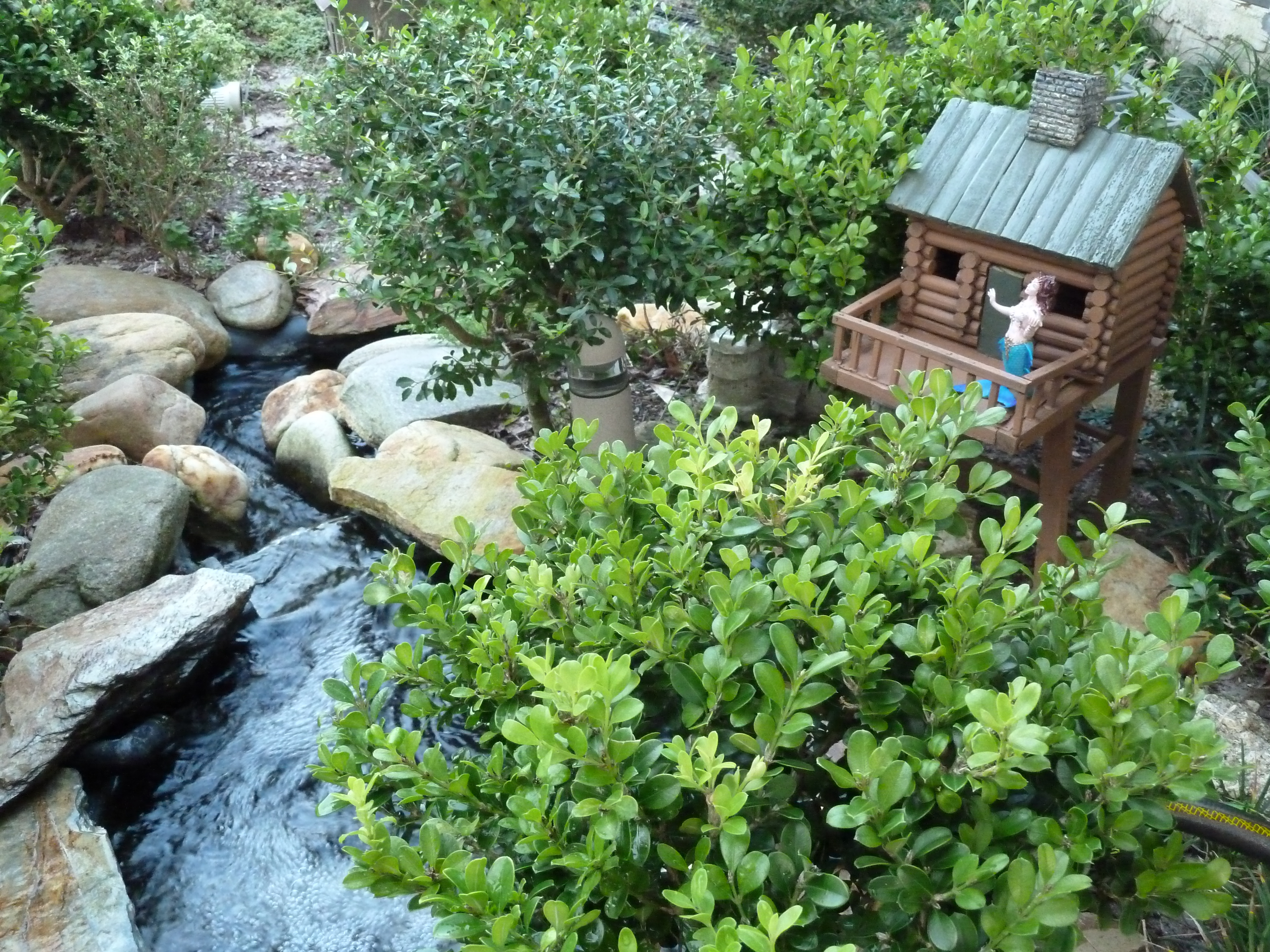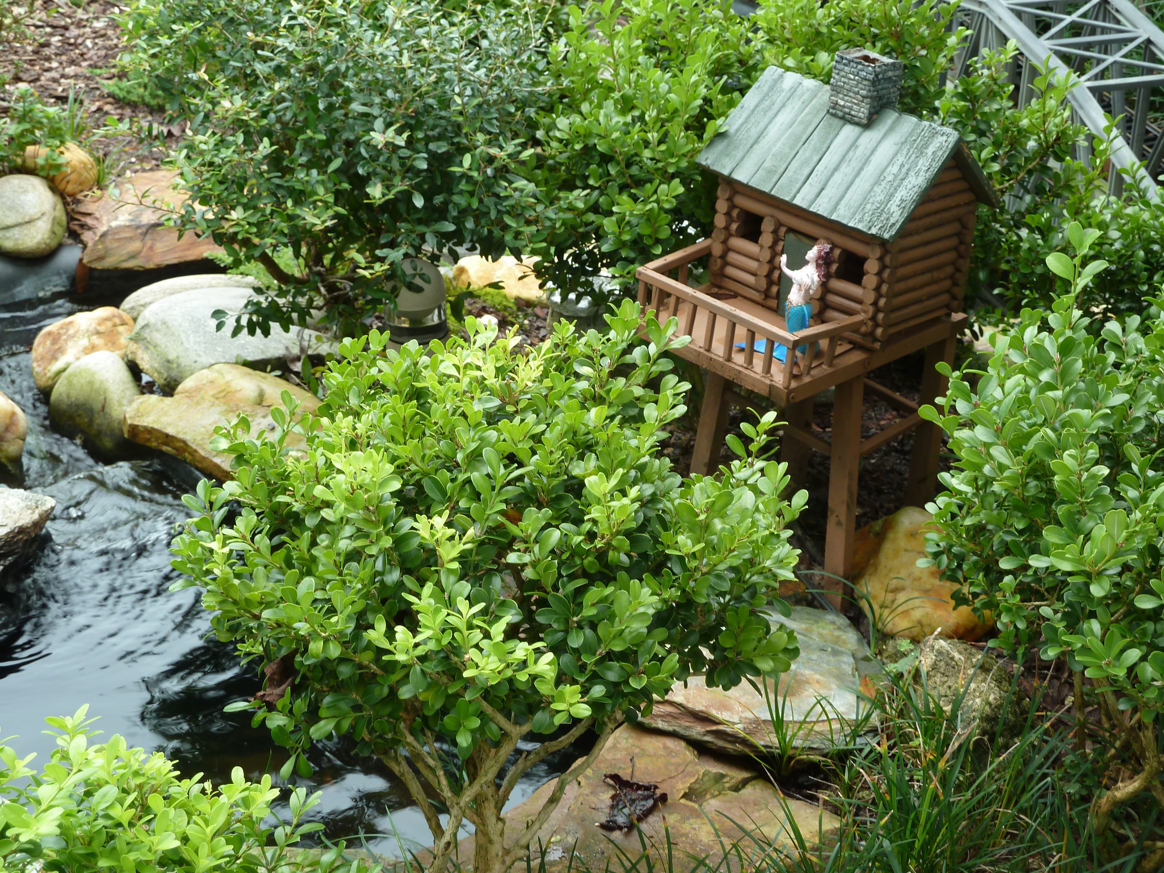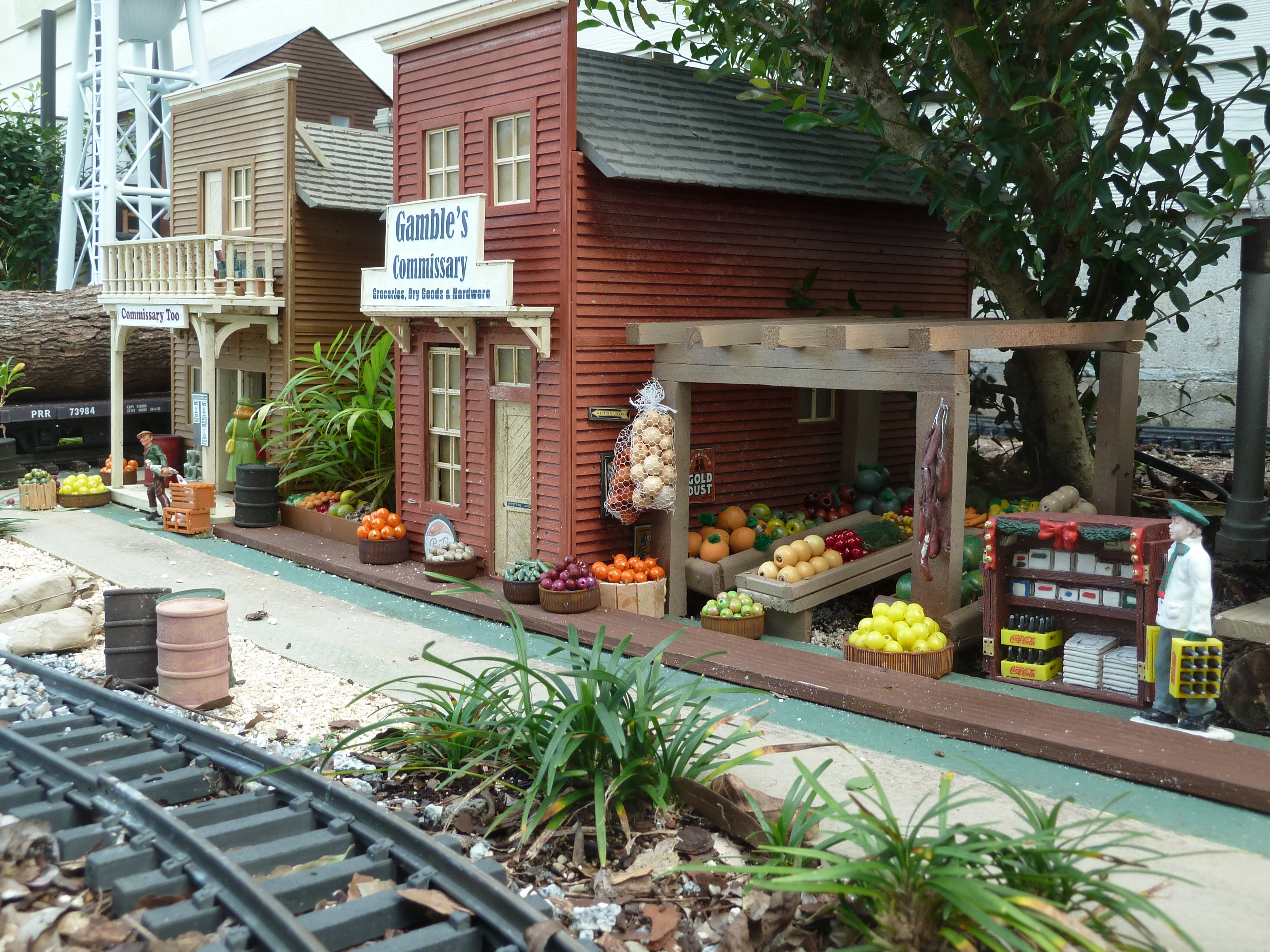 The layout is over 12 x 60 feet, with 3 lines, a tunnel, 2 rivers and a 4 lakes. Planted with over 60 species of miniature plants, the layout depicts a logging town in west central Florida, however, imagination sometimes triumphed, as it is unlikely tunnels would be needed in this part of the state.