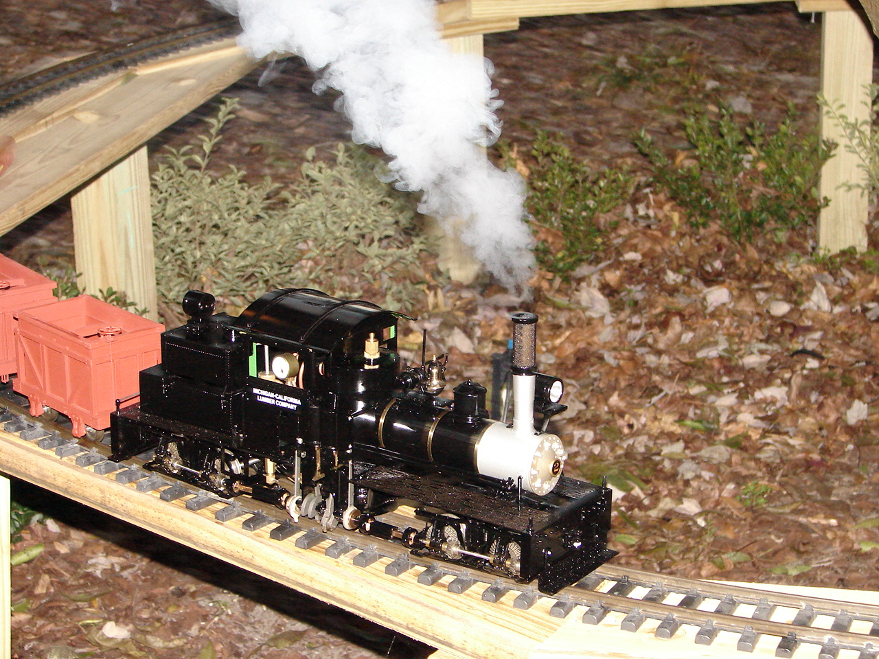 The live-steam engine above is manufactured by Roundhouse in England. The model is a forney.